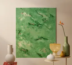 When painting this abstract piece, I was very inspired by the bright green leaves of Pteridium, which grow all around me in the spring. Let my colorful artwork bring a piece of nature to your home interior 🌿