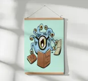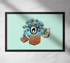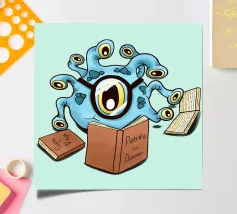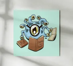 Entouré de livres ouverts, un porteur de bec à lunettes se plonge dans ses études avec un air de curiosité intellectuelle. Cette illustration fantaisiste réimagine la créature emblématique de la fantasy comme un érudit dévoué, avec des clins d'œil ludiques au "Guide des rayons" et à la "Pétrification pour les nuls". Un must pour les amateurs de fantasy, les joueurs de jeux de rôle et tous ceux qui apprécient une approche intelligente et humoristique des monstres classiques.