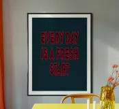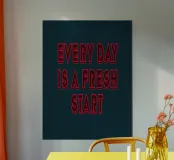 Ce design audacieux et inspirant nous rappelle que chaque jour est l'occasion de prendre un nouveau départ. La typographie graphique ajoute une touche de modernité, ce qui en fait un objet de motivation parfait pour n'importe quel espace.