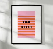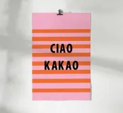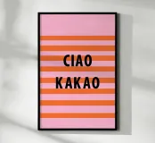 "Ciao cacao" - une bande d'adieu tendance à la typographie stylée, qui combine un flair italien avec une palette de couleurs joyeuses en rose et orange. Idéal pour un poster moderne et minimaliste !