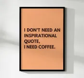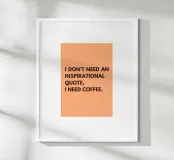 Pour ceux qui carburent à la caféine et au sarcasme, cet imprimé dit tout : "Je n'ai pas besoin d'une citation inspirante, j'ai besoin de café". Parfait pour les amateurs de café, les lève-tôt et tous ceux qui ne peuvent se passer de leur boisson quotidienne, ce motif minimaliste mais audacieux ajoute une touche amusante et réaliste à votre cuisine, votre bureau ou votre coin café.