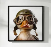 Ajoutez une touche de fantaisie à votre espace avec cet art mural de canard audacieux présentant un casque et des lunettes de style vintage. Parfaite pour donner du caractère à n'importe quelle pièce, cette impression de haute qualité allie humour et charme pour les amoureux des animaux comme pour les amateurs de décoration. Découvrez des motifs artistiques uniques qui suscitent la joie