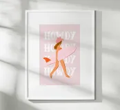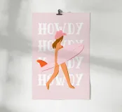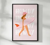 imprimé cowgirl rose, western girly, art mural fille surfeuse, décoration chambre ado cowgirl plage, imprimé bottes cowgirl