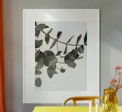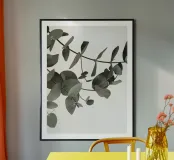 Eucalyptus Minimal - un motif naturel élégant dans des tons discrets poster avec cadre en bois