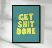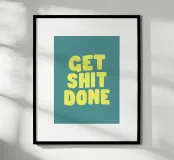 Get Shit Done est une typographie audacieuse et accrocheuse qui allie humour impertinent et motivation. Le lettrage jaune dessiné à la main se détache sur un fond vert pastel apaisant, créant un contraste visuellement saisissant. Cette œuvre d'art ludique mais puissante sert de rappel quotidien pour rester concentré et productif. Il est parfait pour les bureaux à domicile, les espaces de travail ou toute autre zone nécessitant un regain d'énergie et de détermination. Les couleurs vives et le style informel en font un cadeau idéal pour les fonceurs, les entrepreneurs ou toute personne cherchant à ajouter une touche d'audace à son décor.