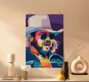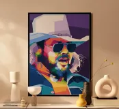 Hank Williams Jr. en WPAP (Wedha's Pop Art Portrait) est une représentation vibrante et géométrique du légendaire chanteur de country. Ce style artistique utilise des couleurs audacieuses et contrastées et des formes angulaires nettes pour créer un portrait frappant, moderne et abstrait, tout en conservant les traits reconnaissables du chanteur.
