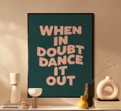 Ajoutez une touche ludique à votre espace avec cette charmante impression typographique qui comporte la phrase vivante "When in Doubt Dance it Out" en lettres roses chaudes dessinées à la main. Sur un fond vert mat, cette impression crée un charmant contraste qui attire l'attention. Il est parfait pour les studios de danse, les salons ou tout autre endroit nécessitant un regain d'énergie et de positivité. L'impression de haute qualité présente des détails complexes et des couleurs douces, garantissant un impact durable. Embrassez la joie du mouvement et ajoutez une touche de fantaisie à votre décor avec cette œuvre d'art encourageante, inspirée de la danse.