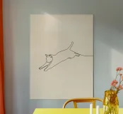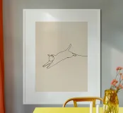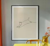 Dessin au trait minimaliste d'un chat qui saute | Abstrait moderne poster