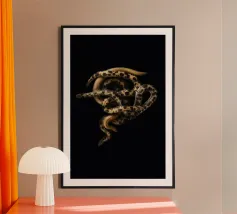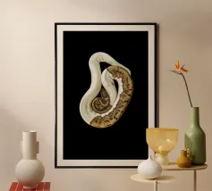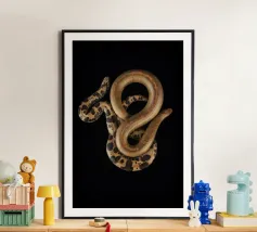 Élevez votre espace avec l'allure hypnotique de notre poster Python, qui présente la beauté sinueuse d'un python sur un fond noir audacieux. Le contraste intense met en valeur les écailles complexes et les courbes gracieuses de cette créature remarquable, ajoutant une touche de mystère et de sophistication à n'importe quelle pièce. Parfaite pour les passionnés de la nature ou les amateurs de décoration audacieuse, cette affiche de haute qualité promet des détails éclatants et des couleurs durables. Laissez cette pièce captivante devenir le point central de votre espace. Libérez la puissance et l'élégance de la nature.