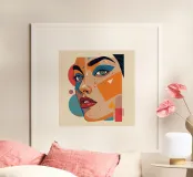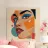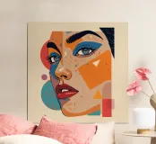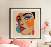 Portrait abstrait avec formes géométriques et couleurs vives poster