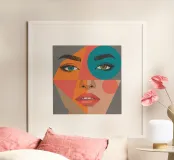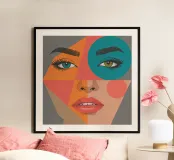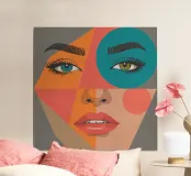 Portrait géométrique d'un visage de femme avec des couleurs différentes poster