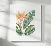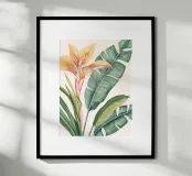 Plongez dans la beauté vibrante de la nature tropicale avec cette œuvre d'art botanique boho représentant la fleur emblématique de l'oiseau de paradis et les feuilles luxuriantes de Monstera. Les délicates nuances de vert, de rose et d'orange se mélangent harmonieusement, évoquant une ambiance tropicale sereine. Parfaite pour ajouter une touche d'élégance exotique à n'importe quel espace, cette œuvre célèbre la vitalité luxuriante de la nature et est idéale pour les amateurs de botanique et d'intérieurs d'inspiration bohème.