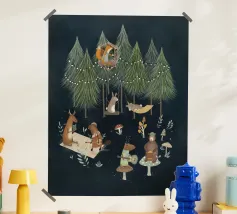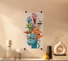 Un groupe de monstres joyeux dans une forêt enchantée poster