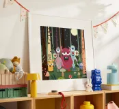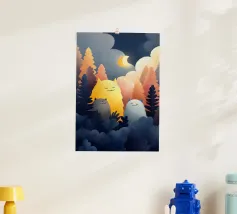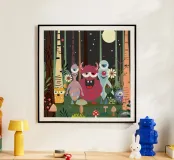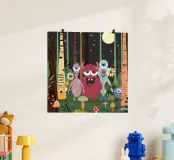 Un groupe de monstres amusants dans une forêt nocturne, entourés de fleurs, de champignons et de lumière magique. Ce design est ludique, créatif et parfait pour tous les fans de monstres et de fantaisie.