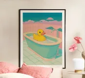 Si vous n'avez pas de canard en caoutchouc jaune géant dans votre baignoire vintage, vous devriez vous en procurer un. Vous devriez également vous procurer cette œuvre d'art pour transformer le décor fade de votre salle de bains. Le design ludique et la palette rétro insufflent instantanément de la vie et de l'humour dans n'importe quelle pièce, transformant les moments de routine en une expérience fantaisiste. Les enfants adorent ce canard lumineux et sympathique, et les invités ne peuvent s'empêcher de sourire en le voyant. Pour tous ceux qui cherchent à faire une déclaration audacieuse, sans sacrifier le charme et le goût artistique, cette œuvre d'art est le moyen idéal d'injecter de la couleur, de l'humour et de la personnalité dans un espace autrement ordinaire.