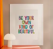 Ajoutez une touche de positivité à votre espace avec cette impression typographique vibrante. Avec le message édifiant "Be Your Own Kind of Beautiful" en lettres aquarelles arc-en-ciel, cet imprimé célèbre l'individualité et l'amour de soi. Le style peint à la main ajoute une touche personnelle, tandis que le fond blanc fait ressortir le texte coloré. Parfaite pour égayer n'importe quelle pièce, cette œuvre inspirante vous rappellera chaque jour d'embrasser votre beauté unique. Idéale pour les chambres à coucher, les bureaux ou les espaces de vie, cette œuvre d'art constitue un cadeau attentionné ou un ajout charmant à votre propre décor.