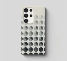 Un ensemble vibrant de cercles se chevauchant dans différentes nuances de gris, de noir et de blanc crée un motif visuel attrayant. Le motif présente des tons contrastés qui ajoutent de la profondeur.