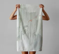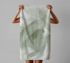 Coups de pinceau abstraits à l'aquarelle dans des tons pastel de vert, de gris et d'une touche de rose.