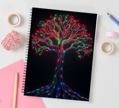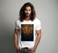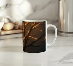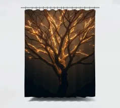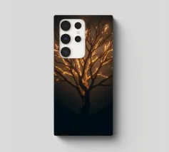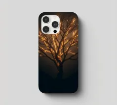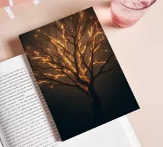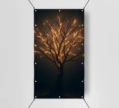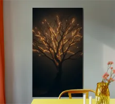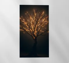 La silhouette saisissante d'un arbre dont les branches s'illuminent crée un motif abstrait et enchanteur adapté au papier peint. L'arrière-plan nocturne renforce l'effet lumineux.