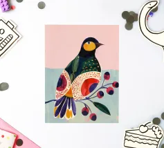 "Patchwork Perfection" captures the vibrant beauty of birds, each adorned in a mosaic of colorful patterns. This art print celebrates the harmony of nature’s palette through intricate feathered details.