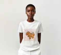 Cet adorable petit dinosaure ne demande qu'à répandre l'amour, car il serre joyeusement un cœur rose vif tout en flottant sur un lit de nuages colorés. Avec ses grands yeux brillants et son expression enjouée, ce dino apporte un charme irrésistible à n'importe quel décor. Les teintes vibrantes d'orange, de vert et de rose en font un régal visuel pour les amateurs de dinosaures de tous âges. Qu'il s'agisse d'un ajout mignon à votre décor ou d'un cadeau amusant, cet adorable dinosaure est prêt à partager des sourires et de la chaleur !