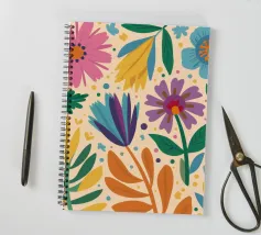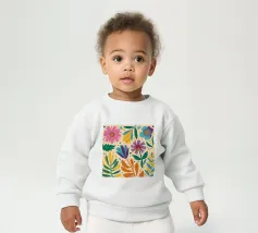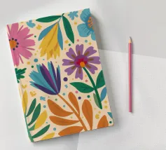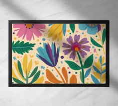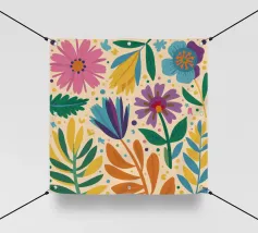 Une belle parcelle de fleurs sauvages fantaisistes et stylisées est illustrée dans un style charmant, inspiré de l'art populaire, avec un délicieux mélange de couleurs et de formes qui rayonnent de joie et de beauté naturelle.