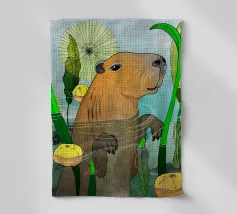 Une jolie illustration de capybara entourée d'un texte de motivation. Les mots encouragent l'individualité avec une touche d'humour, soulignant le charme des capybaras.