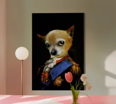 Du hibou Paowla au bouledogue Greg, l'art anthropomorphique de Tein Traniello transforme les animaux domestiques en aristocrates des époques passées. Parfois, ils portent des collerettes seigneuriales, parfois des médailles de guerre - les chats, cacatoès et chihuahas de la cour, heureux de voir leur portrait immortalisé pour la postérité. L'idée du projet "L`Animorphe" est née dans l'atelier de Teins à Amsterdam, lorsqu'il a décidé de faire le portrait de son fidèle labradoodle Ventje (ce qui signifie "petit gars" en néerlandais).