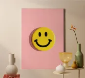 Smiley jaune Dopamine Button Flat Lay toile