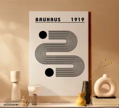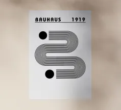 Adoptez l'esthétique emblématique du mouvement Bauhaus avec cet impressionnant tableau d'art graphique datant de 1919. Cette composition abstraite captivante présente une forme centrale tourbillonnante ou en forme de S composée de multiples lignes noires et blanches, flanquée de deux cercles noirs pleins. Dans les coins supérieurs, les textes "BAUHAUS" et "1919" sont affichés, en référence à l'année de fondation de l'école. Cette œuvre d'art incarne les principes du design moderniste - forme, ligne et motif, avec un flux visuel dynamique. Ce fichier d'art numérique de haute qualité présente une résolution étonnante de 7000x5000 pixels à 300 dpi, ce qui garantit une qualité exceptionnelle de l'image.