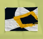 Des courbes noires audacieuses s'entrelacent avec un carré doré vibrant au centre, créant une composition dynamique et abstraite. L'interaction des contrastes sombres et clairs ajoute de la profondeur et du mouvement au motif.