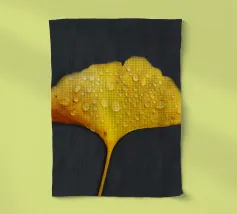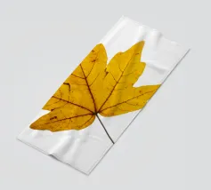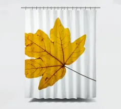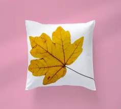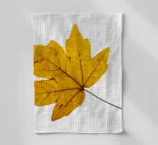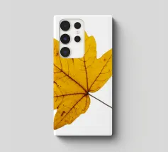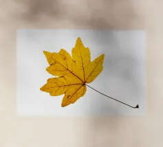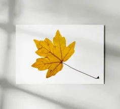 Cette œuvre d'art montre une seule feuille d'érable d'un jaune éclatant, présentée sur un fond blanc qui met en valeur sa forme et sa structure de manière impressionnante. La feuille est bien conservée et présente les cinq lobes caractéristiques de l'érable, avec de fines veines sombres qui courent sur la surface comme un réseau naturel. La symétrie harmonieuse de la feuille et sa riche coloration automnale confèrent à l'image une qualité apaisante, presque méditative.