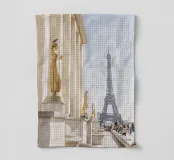 Tour Eiffel et statues dorées à Paris vues du Trocadéro