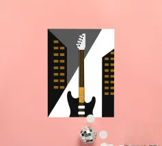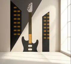 Illustration de guitare électrique au style unique et moderne. Sa conception élégante et détaillée apportera une touche artistique intéressante.