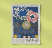 Cette impression d'art captivante représente "The Ten Largest (No.1)" d'Hilma af Klint, une œuvre abstraite profonde datant de 1907. La composition se détache sur un riche fond bleu, rempli d'une tapisserie vibrante de formes organiques, dont de délicates fleurs blanches et roses en haut, et d'audacieuses lignes orange, tourbillonnantes, presque calligraphiques, en bas. Des cercles jaunes et bleus ancrent le bas, contribuant à l'esthétique harmonieuse et symbolique. Signée "H. af Klint", cette œuvre illustre la vision spirituelle et abstraite pionnière de Klint, qui explore les thèmes des débuts de la vie. Ce poster numérique de haute qualité (700