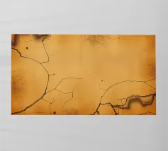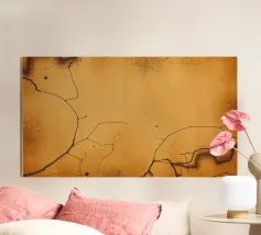 Un motif abstrait captivant présente des fissures complexes sur un fond orange chaud, créant une texture visuellement frappante. Cette œuvre d'art évoque un sentiment de profondeur et de complexité.