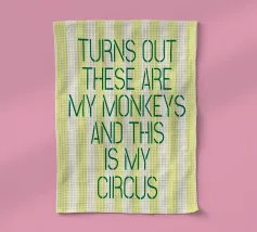 Un lettrage vibrant dessiné à la main dans un kaléidoscope de couleurs orne cette impression d'art typographique d'inspiration vintage. La phrase ludique "Not My Circus Not My Monkeys" se détache sur un fond noir profond, créant un contraste saisissant. Ce design accrocheur allie le charme rétro à la modernité, ce qui est parfait pour ajouter une touche de fantaisie et de couleur à n'importe quel espace. Cet imprimé illustre la beauté du lettrage à la main et le pouvoir des mots en tant qu'art.