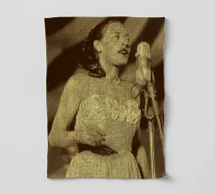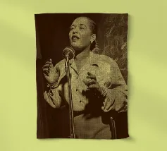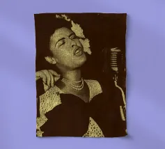 Un moment intime sur scène avec Billie éclairée de dos - mystère, ambiance et magie en une seule image.