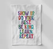 Embrassez la croissance avec cette impression typographique vibrante. Le message "Show Up Do Your Best Be Kind Learn Repeat" (Montrez-vous, faites de votre mieux, soyez gentil, apprenez, répétez) prend vie dans un lettrage aquarelle arc-en-ciel sur fond blanc. Il s'agit d'une œuvre engageante qui rayonne de positivité, parfaite pour les bureaux, les chambres ou les études. Un rappel coloré de l'amélioration de soi, qui illumine n'importe quel espace et incite à adopter des habitudes positives. Laissez cette impression vous inspirer des efforts constants, de la gentillesse et de l'apprentissage dans votre vie quotidienne.