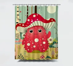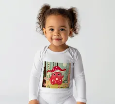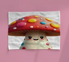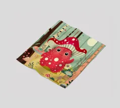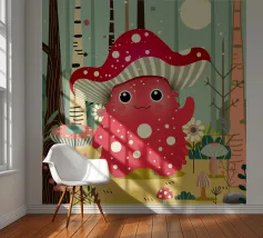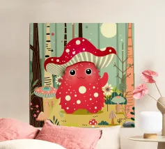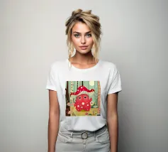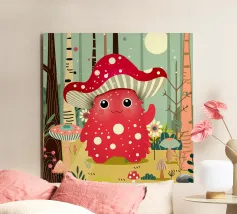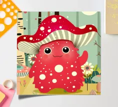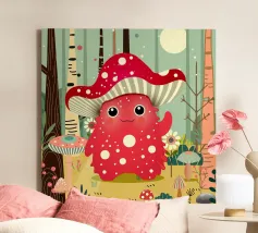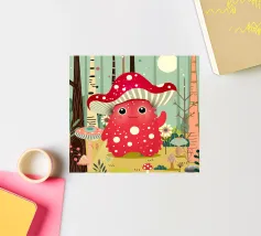 Un joyeux monstre champignon avec un chapeau en forme d'amanite tue-mouches, entouré d'une forêt colorée de champignons et de fleurs. Ce design combine avec charme fantaisie, humour et nature.Ce monstre champignon joyeux respire la joie, l'espièglerie et la fantaisie. Motif : une joyeuse créature imaginaire coiffée d'un chapeau en forme d'amanite tue-mouches, debout dans une forêt colorée. Couleurs : Des tons rouges et verts vifs, combinés à des éléments naturels. Utilisation idéale : parfait pour les produits pour enfants, les affiches créatives ou les idées de cadeaux amusantes. Un design ludique et conçu avec amour