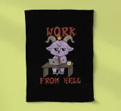 A purple demon goat in a tie sits at a desk with a laptop and coffee, under the phrase “Work From Hell.” The artwork makes a clever pun on daily work feeling like hell, with the demon literally working from hell. Ideal for fans of dark humor, sarcastic office jokes, and anyone who wants to laugh at work struggles.