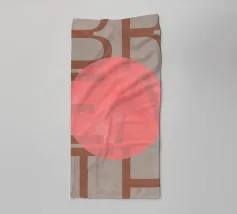 thème de couleur pêche, conception de texte vertical, art graphique audacieux, typographie rétro, esthétique minimaliste, palette de couleurs fruitées