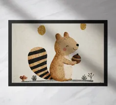 In a whimsical garden, a bear holds a juicy watermelon surrounded by fruits and a lush tree. The lively composition celebrates abundance and nature�s sweetness.