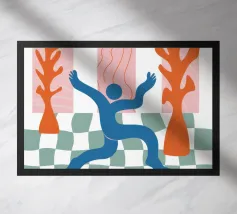 Une composition abstraite moderne et ludique présentant une disposition en grille de formes organiques colorées. L'œuvre ressemble à un puzzle sophistiqué et équilibré de formes et de couleurs.