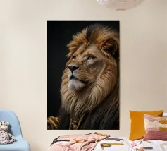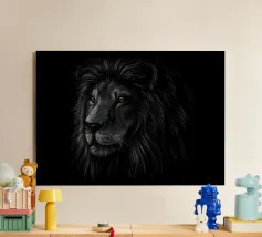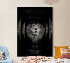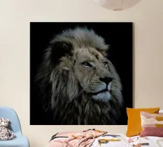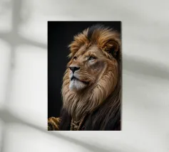 Ce portrait impressionnant en noir et blanc d'un lion majestueux montre sa crinière impressionnante et son puissant museau en gros plan très détaillé. La composition minimaliste et la structure fine du pelage soulignent la beauté et la force naturelles de cet animal sauvage.