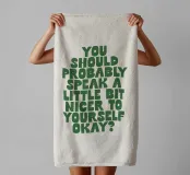 Avec son lettrage vert audacieux dessiné à la main sur un fond beige doux, cette pièce exsude la chaleur et la compassion de soi. Le contraste frappant crée un point focal qui attire l'attention et s'adapte à tous les styles de décoration. Parfait pour ceux qui cherchent à insuffler de la positivité et de l'amour de soi dans leur environnement. Idéale pour les chambres à coucher, les bureaux ou les espaces de vie, cette impression ajoute un rappel doux à vos murs. L'aspect artisanal du lettrage confère à l'œuvre d'art un caractère personnel et accueillant. Transformez votre intérieur avec cette œuvre stimulante qui encourage les gens à se parler avec gentillesse et à se sentir bien dans leur peau.