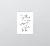 Ajoutez une touche de romantisme avec notre motif "Together is our favorite place to be". Avec sa police noire écrite à la main sur fond blanc, cette citation inspirante est parfaite pour les couples et les familles. Choisissez parmi un poster, un coussin, un rideau de douche ou des mugs pour apporter chaleur et amour à votre espace. Une merveilleuse idée de cadeau pour votre bien-aimé(e) ou un ajout charmant à votre décoration intérieure. Célébrez la magie de l'union avec notre imprimé typographique.