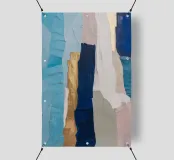 Les plans colorés s'empilent comme des couches géologiques dans un patchwork abstrait.