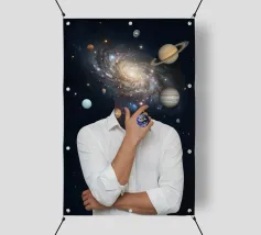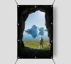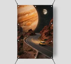 Découvrez la magie du voyage et du ciel nocturne grâce à cette œuvre d'art atmosphérique représentant une main qui touche délicatement le hublot d'un avion surplombant des dunes désertiques rougeoyantes. Un croissant de lune brille dans un ciel bleu profond rempli d'étoiles, créant un mélange serein d'errance et d'émerveillement. Les sables chauds et dorés contrastent magnifiquement avec les tons frais de la nuit, capturant le sentiment de solitude, de réflexion et de rêve au-dessus du monde. Parfait pour les amateurs de voyages, les minimalistes et les fans d'art cinématographique et de vues de fenêtre rêveuses.