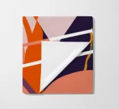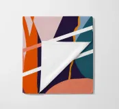 Une œuvre abstraite très énergique composée d'éclats et de motifs géométriques tranchants qui s'entrechoquent. La palette audacieuse d'orange, de sarcelle, de rose et de noir, associée à des lignes dynamiques, crée un puissant sentiment de mouvement et d'énergie moderne.